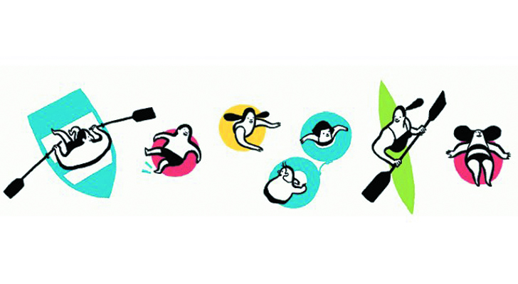 Google celebrates hemisphere official start of summer with a Doodle dedicated solstice in the southern hemisphere. In the seven figures of people practicing various water activities appear.